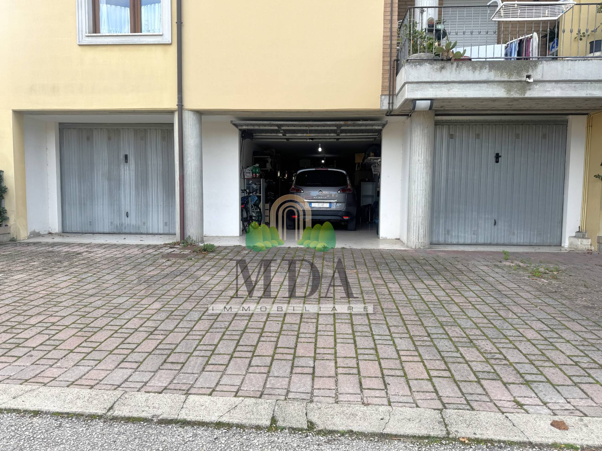 A completare la proprietà, un ampio garage di 43 mq. circa con corte antistante ad uso esclusivo, perfetta come posto auto.