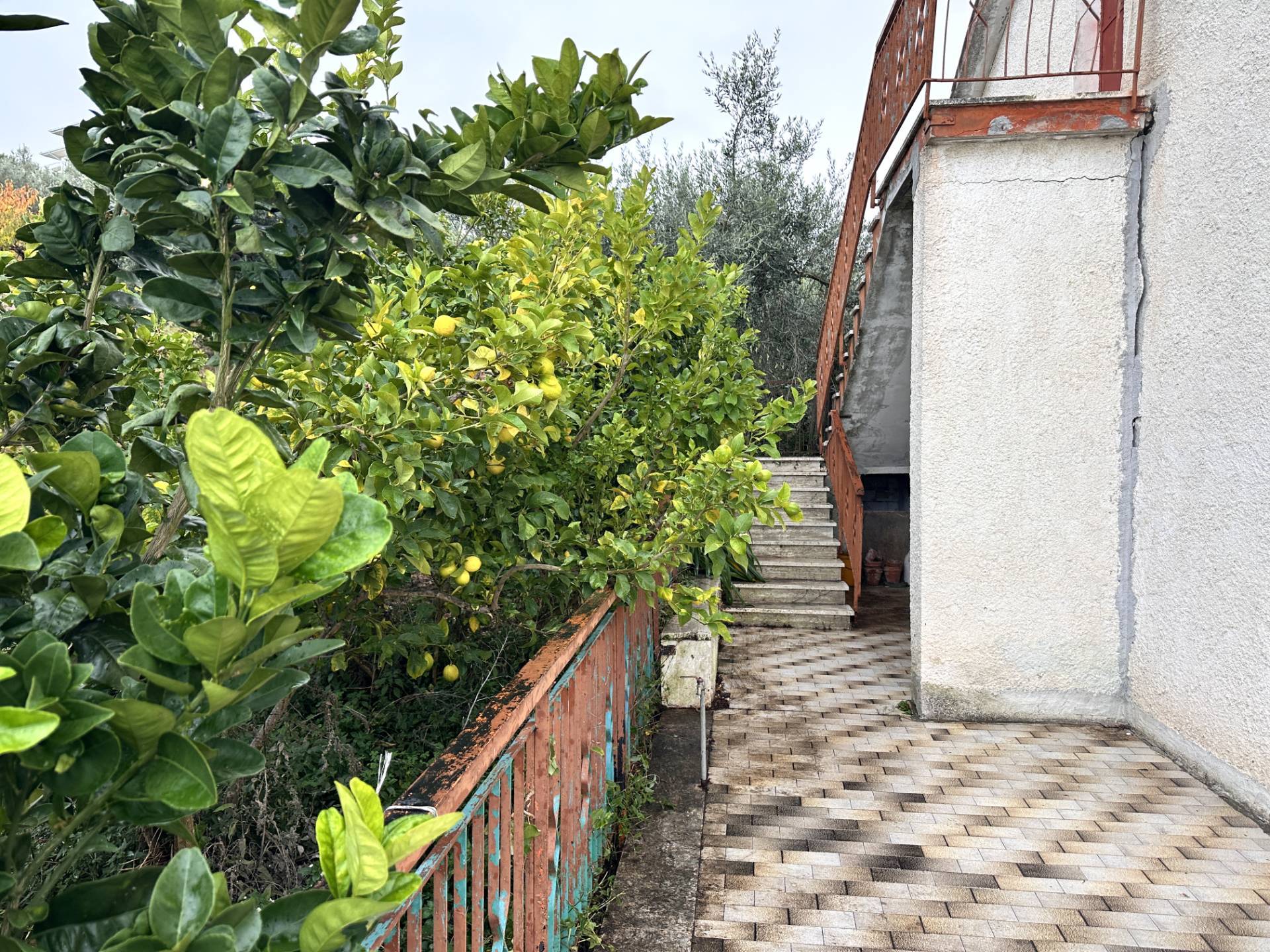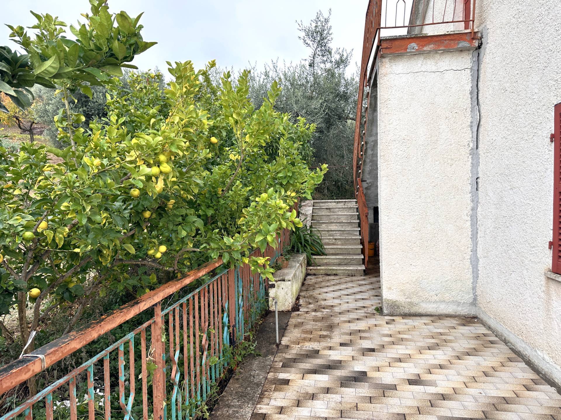 La Casa singola insiste su di un terreno di 515 mq. circa, in parte piastrellato ed in parte lasciato a giardino, arricchito da piante da frutto e ulivi.