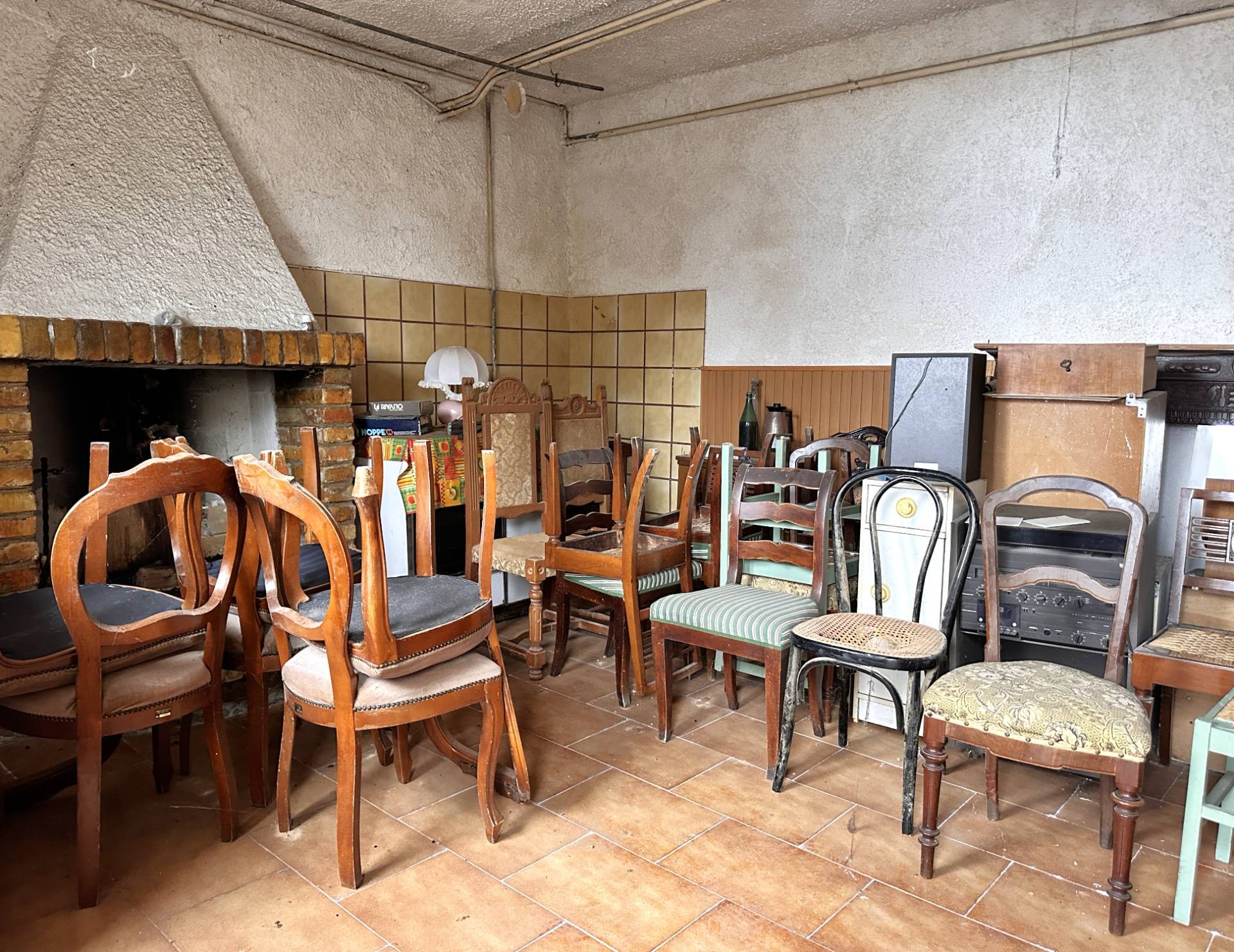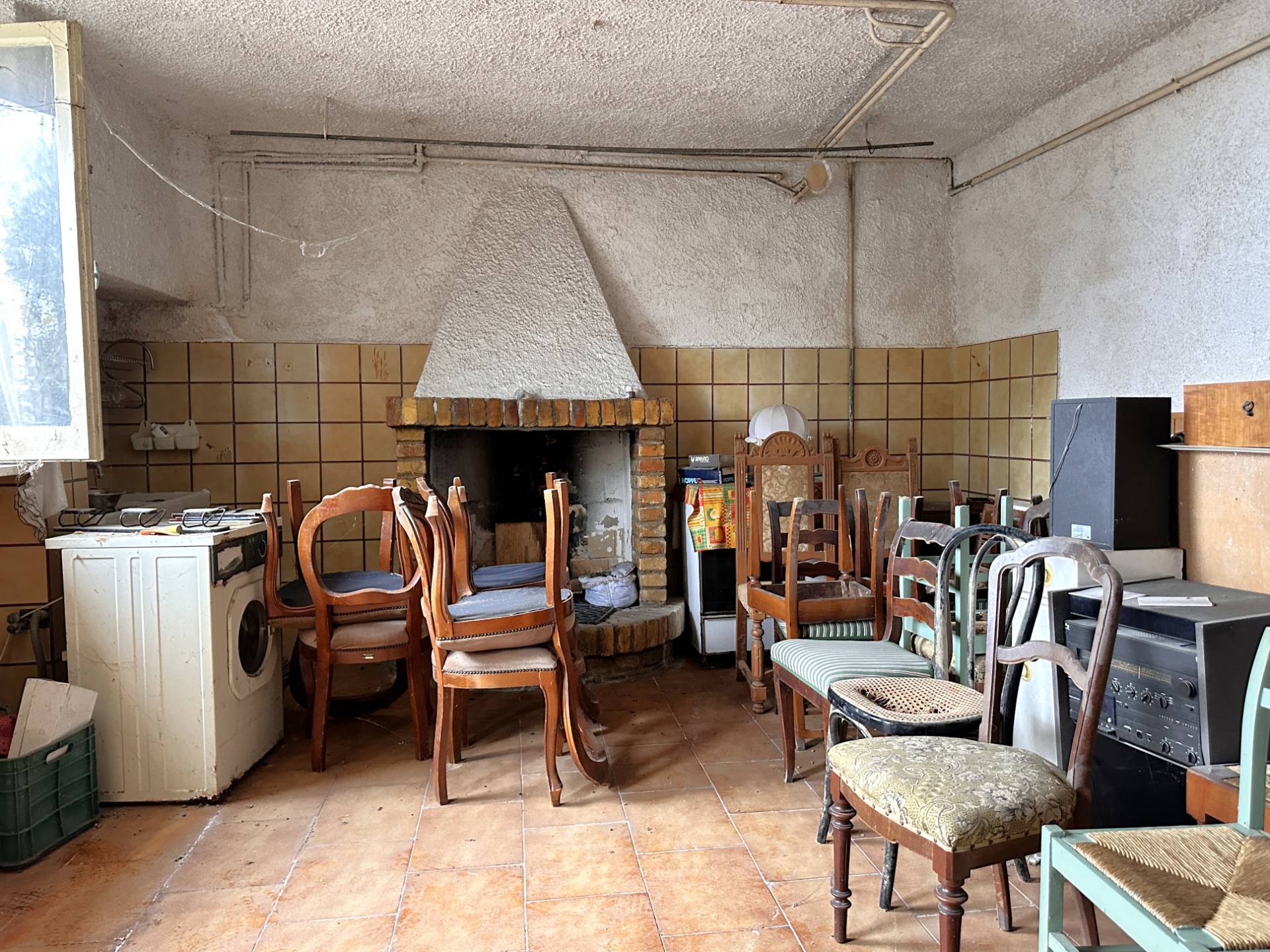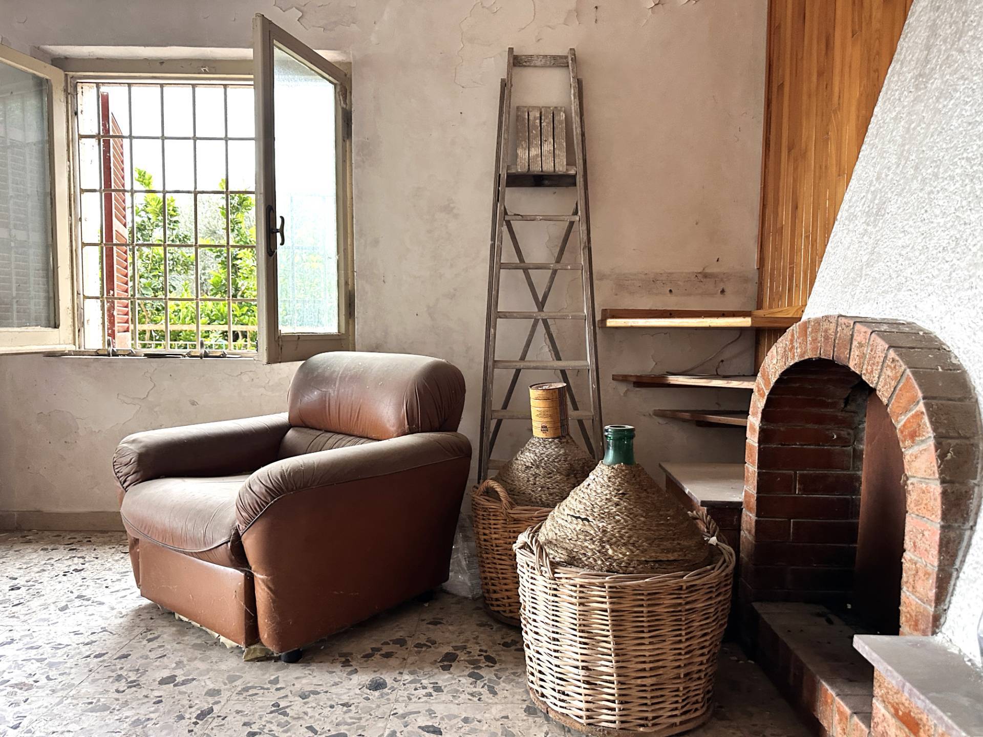 Il piano terra, 100 mq. circa, è composto da: un garage, due ripostigli, uno dei quali dotato di camino, una cantina ed un ulteriore ripostiglio, tutti collegati fra loro.