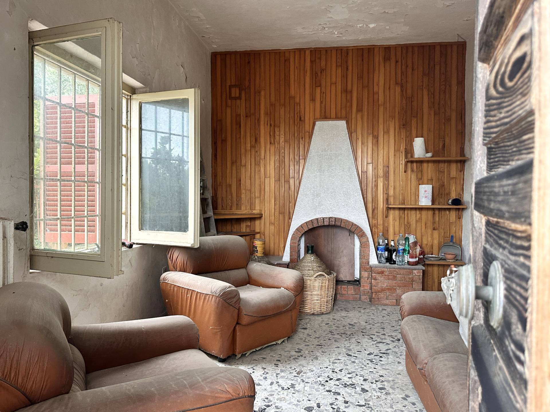 La Casa singola, 200 mq. circa in totale, è disposta su due livelli e necessita di interventi di ristrutturazione.