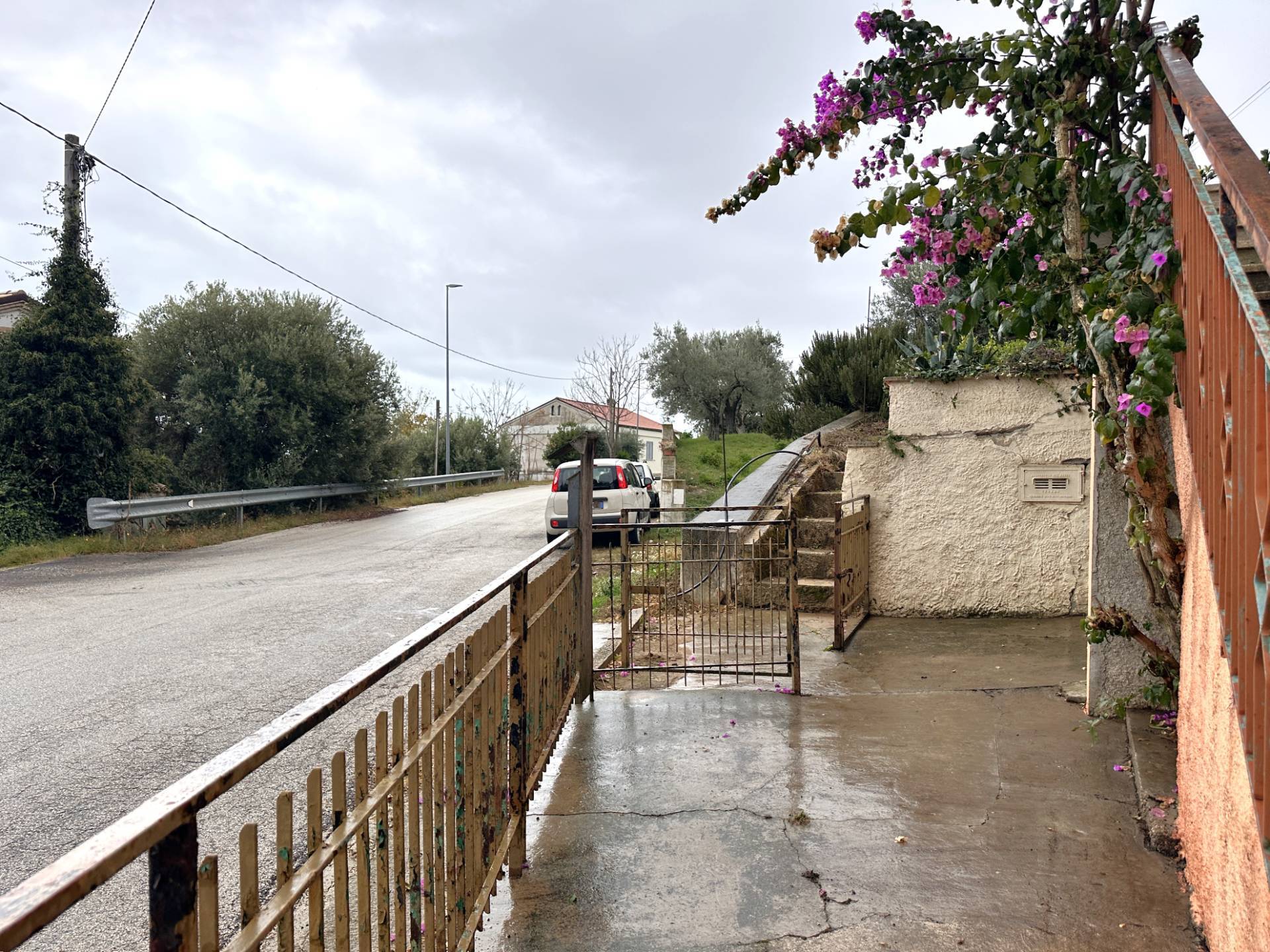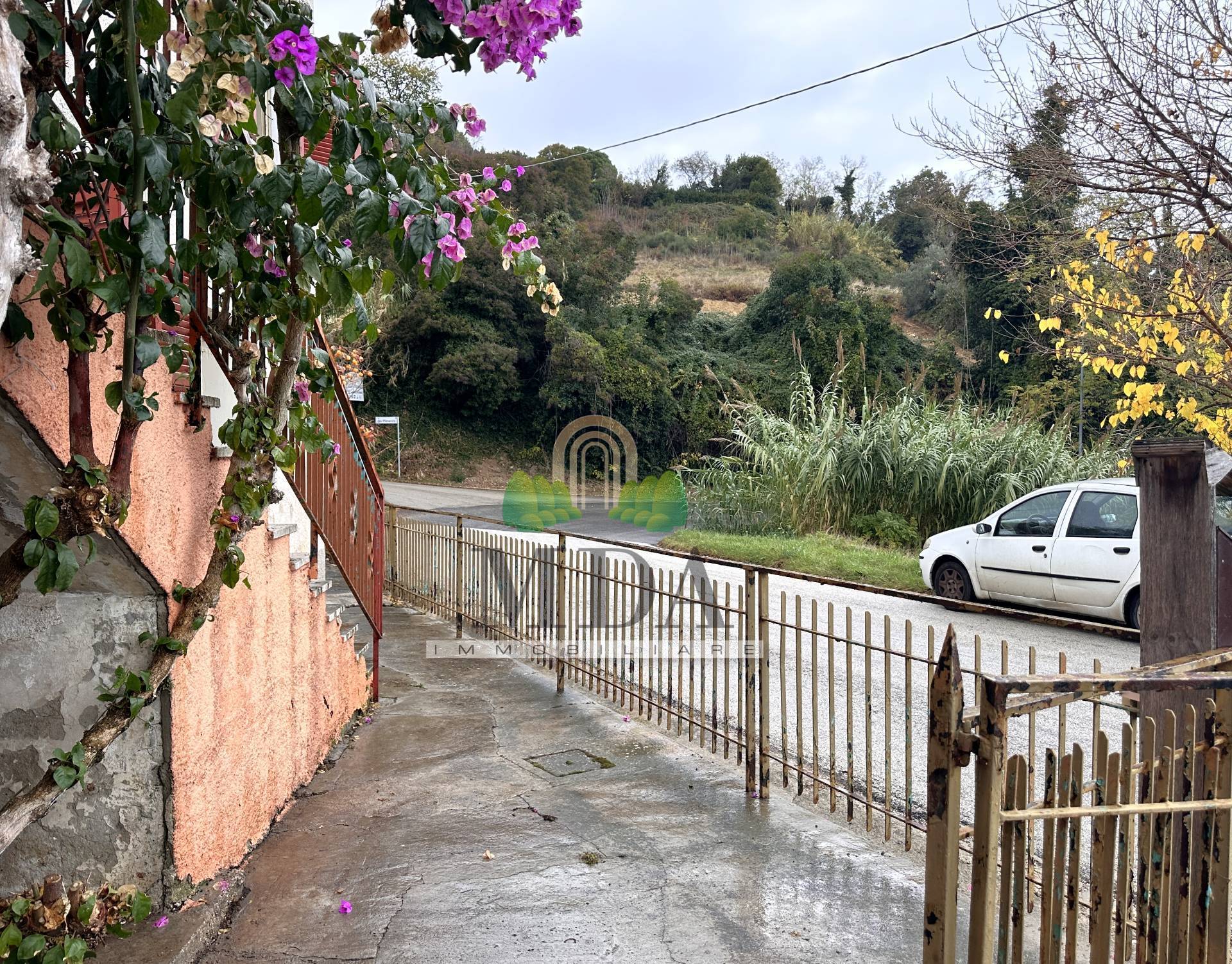 L’unità immobiliare è completamente recintata e dispone di due ingressi: uno fronte strada e uno sul retro, attraverso il giardino.