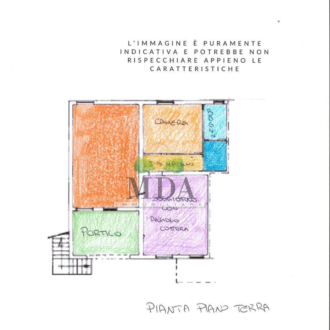 L'appartamento al piano terra, 115 mq circa, è composto da tre locali: ampio soggiorno con angolo cottura, una camera matrimoniale, bagno finestrato con doccia e un ulteriore ambiente allo stato grezzo attualmente adibito a rimessaggio, ma con la possibilità di realizzare un secondo soggiorno o due camere da letto. Completa il piano un portico esterno.