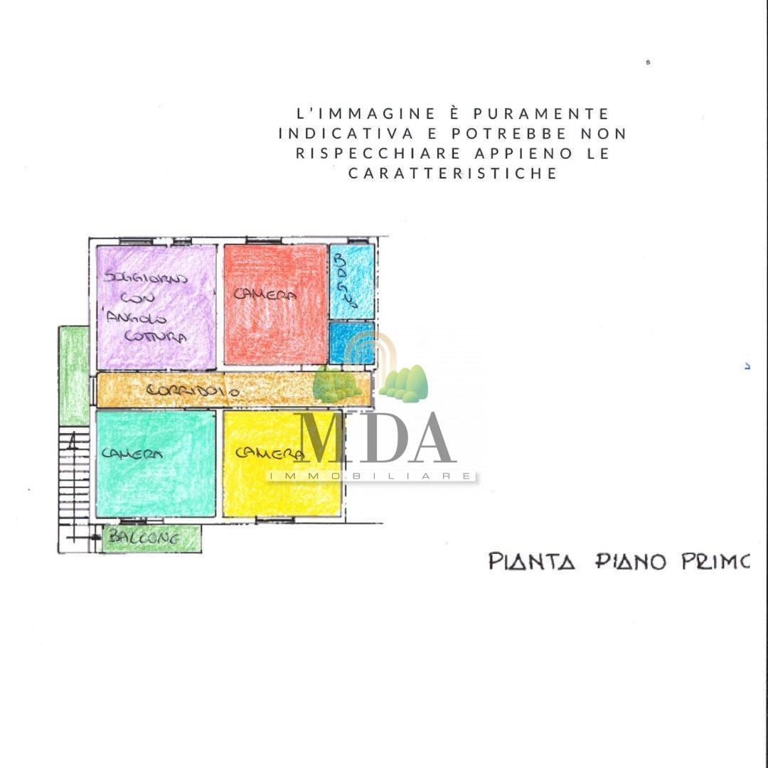 Attraverso una scalinata esterna si accede al primo piano, 122 mq circa, composto da: ingresso, soggiorno con angolo cottura, disimpegno, tre camere matrimoniali e bagno finestrato con doccia.