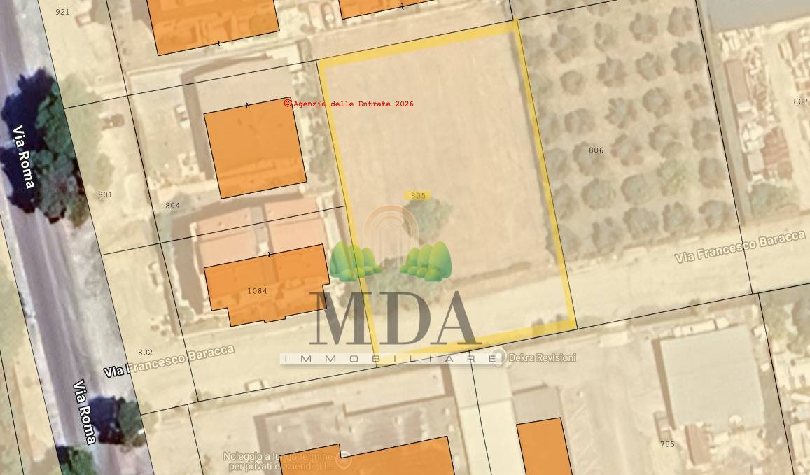 Il terreno si presta a diverse soluzioni progettuali, con la possibilità di frazionamento in due lotti distinti: uno frontale con accesso diretto e uno retrostante servito da passaggio dedicato.